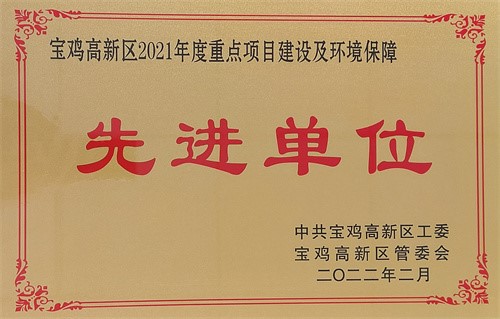 陜西紫光辰濟藥業(yè)有限公司榮獲“寶雞高新區(qū)2021年度重點項目建設(shè)及環(huán)境保障先進單位”